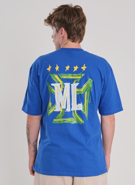 Camiseta Oversized Estampada Brazil — Preto, Azul Royal e Amarelo